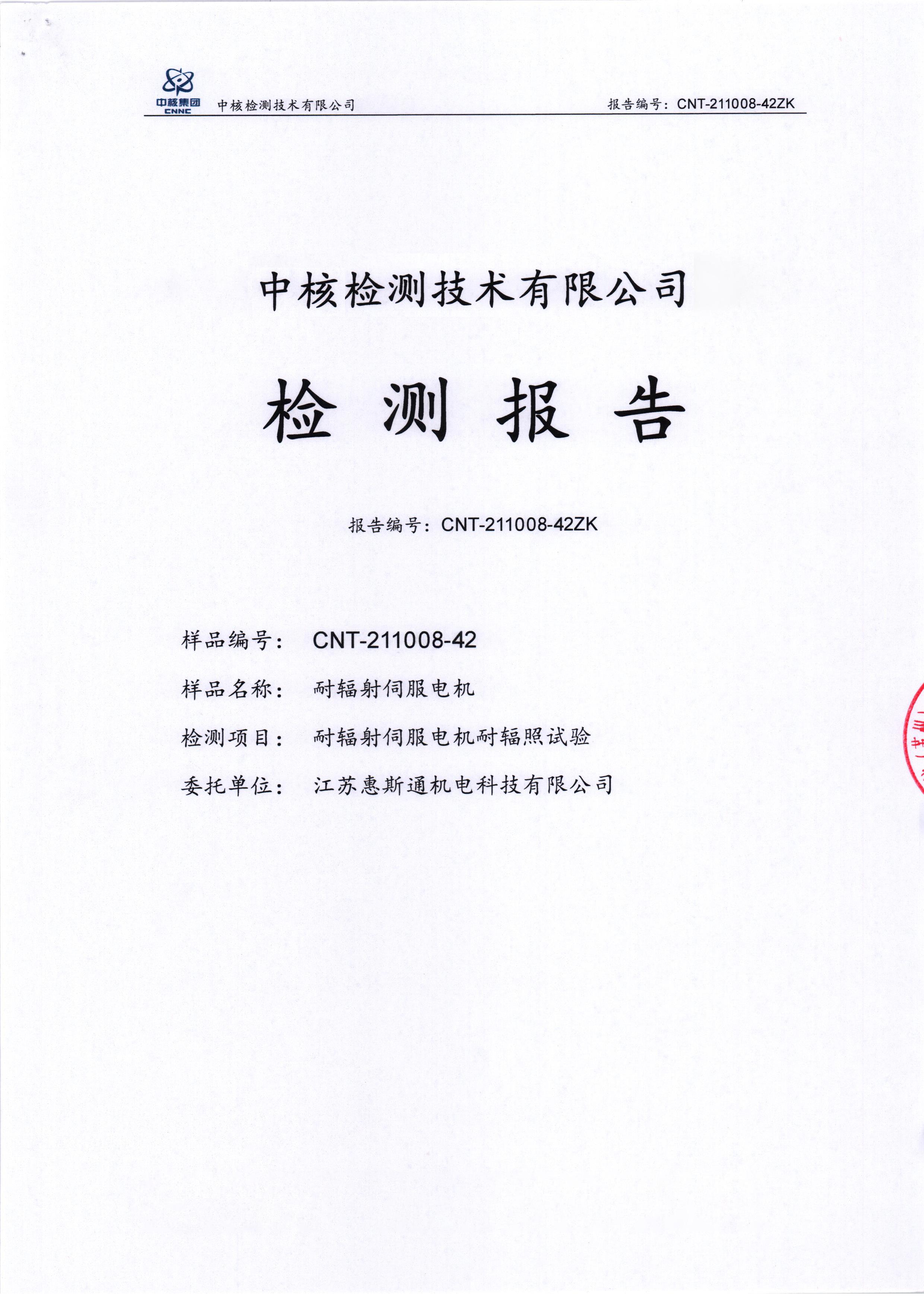 耐辐射电机第三方检测报告