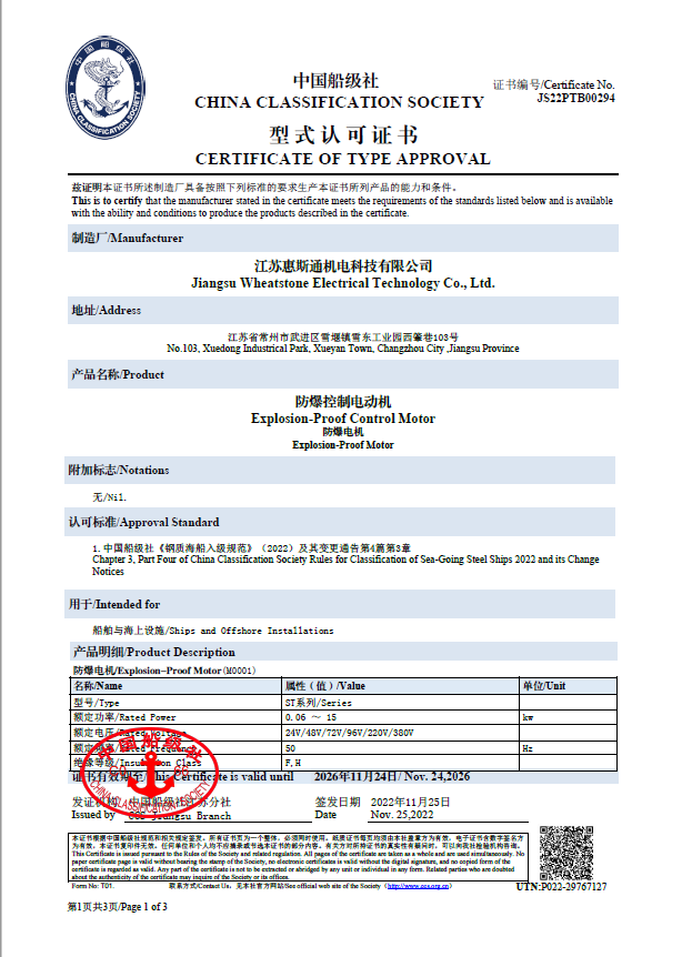 中国船级社型式认可证书