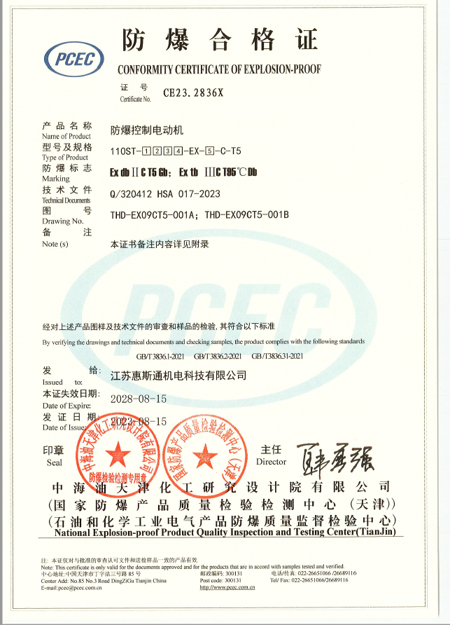 110基座ⅡCT5防爆控制电动机证书