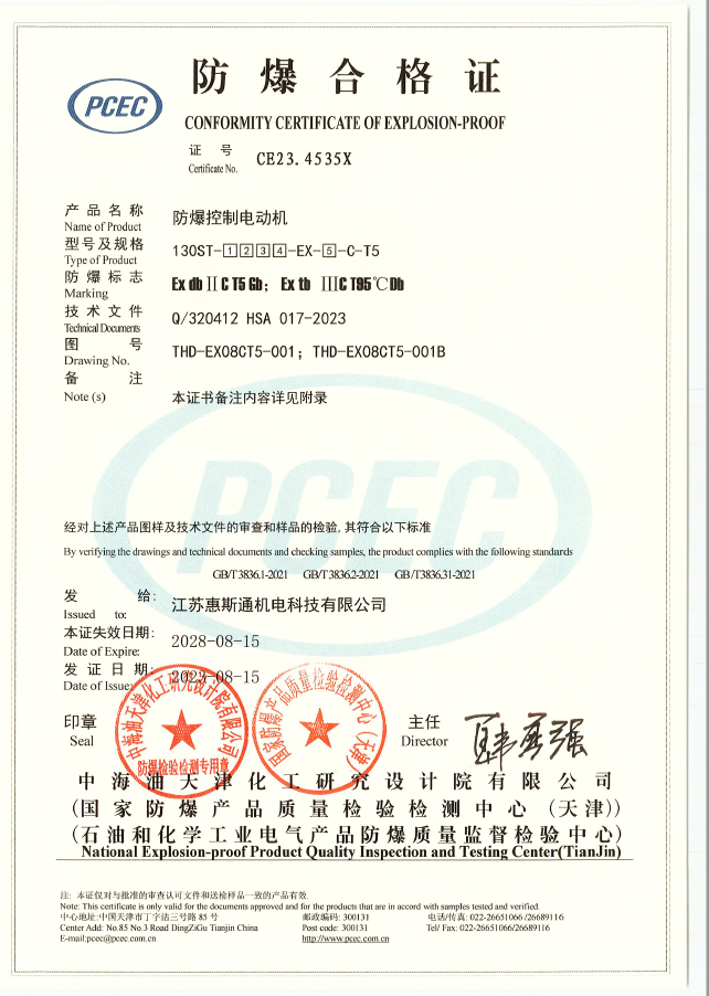 130基座ⅡCT5防爆控制电动机证书