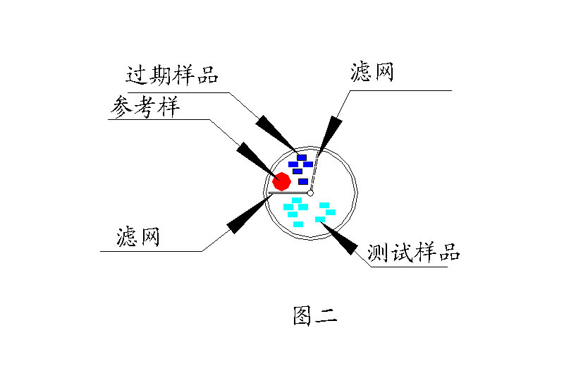 将柱内立体圆柱空间分布按功能进行划分,将参考样布置于柱内左侧后方,将测试过的过期样品有系统自动在每次清理后推至柱后侧区域,而柱正面全部留给当前有效样品使用。